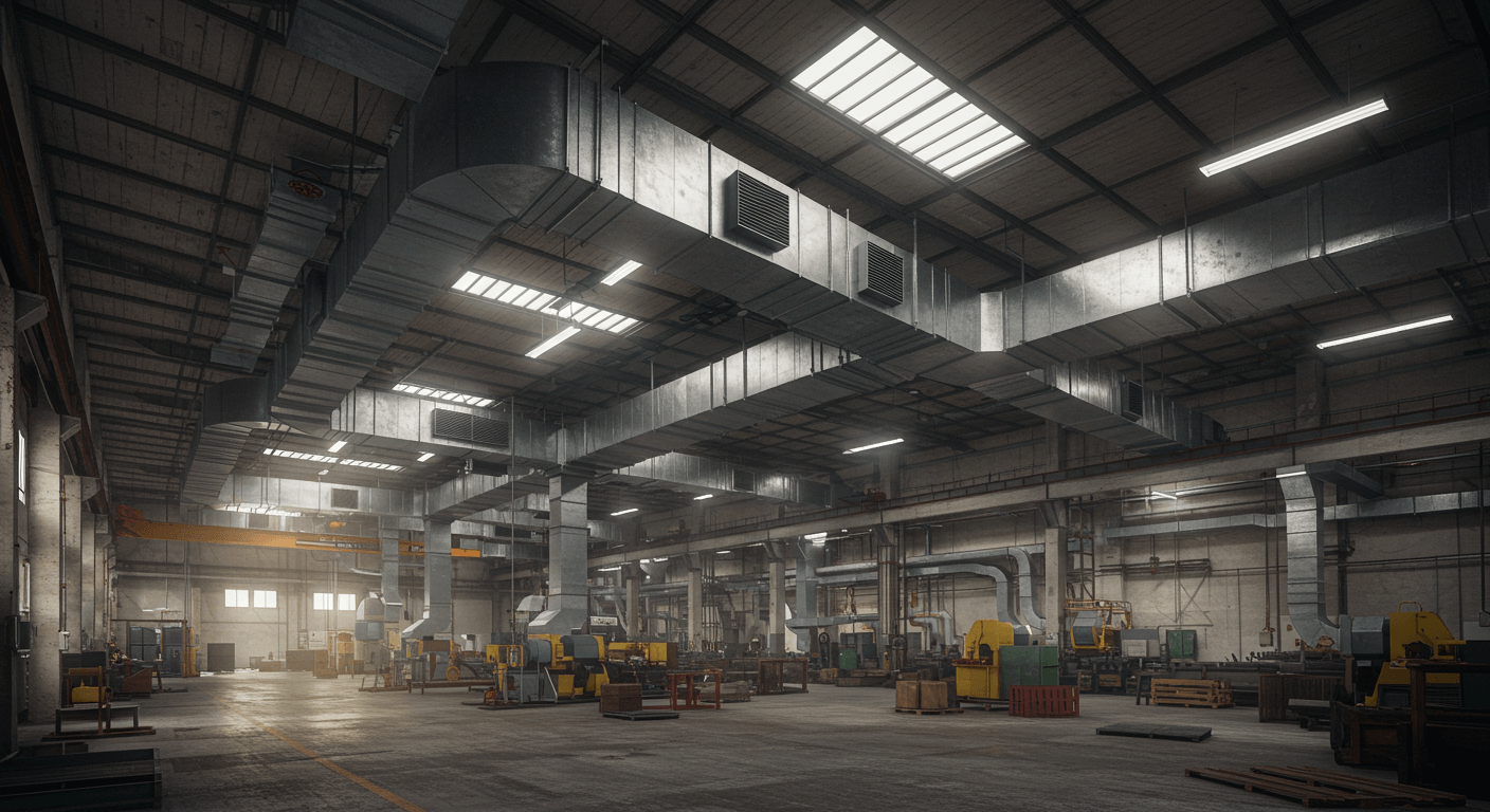 Industrial Ventilation Systems: We design and implement powerful and efficient systems for factories and workshops that remove dust, smoke, vapor, and chemical gases generated during production from the environment, protecting worker health and complying with legal regulations.